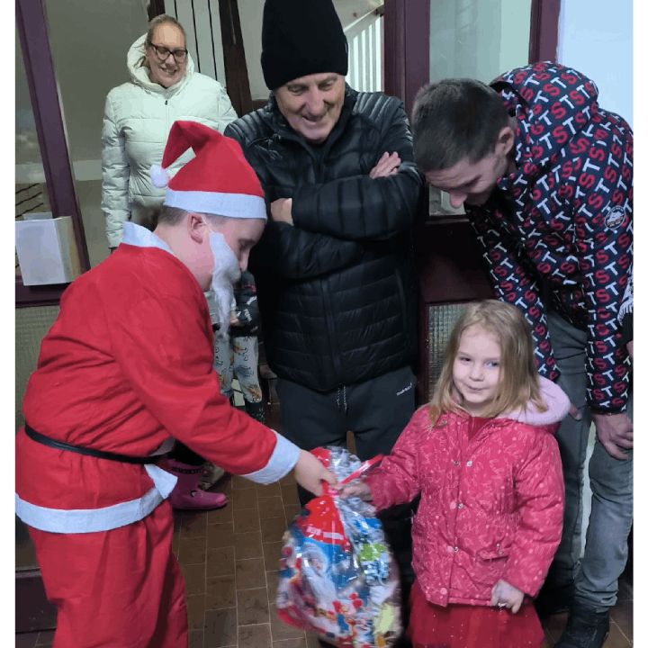 Obradovala su se deca i Deda Mrazu i paketićima, kao i ručno izrađenim privescima koje je sa ljubavlju za ovu priliku izradila Dušanka Janošević, komšinica iz zgrade koja je i prošle godine, istim povodom, pripremila simbolične poklone za sve mališane.