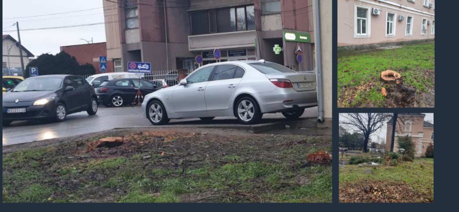 Fotografije i snimak posečenih stabala u krugu Opšte bolnice u Kruševcu objavila je na društvenim mrežama, te prosledila našoj redakciji, sugrađanka Jovanka Andrić, koja je i predsednica Inicijativnog odbora za zaštitu parka Bagdala.