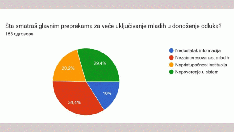 Tu su i lične barijere: nedostatak samopouzdanja, strah od podsmeha, osude okoline ili porodice, ali i dugogodišnja kultura ćutanja u nekim sredinama, gde se „ne talasa“ i ne dovodi u pitanje autoritet. Mladi iz manjih mesta dodatno ukazuju na odlazak vršnjaka u veće gradove, manjak lokalnih prostora za okupljanje i osećaj da njihove potrebe niko zaista ne razume.