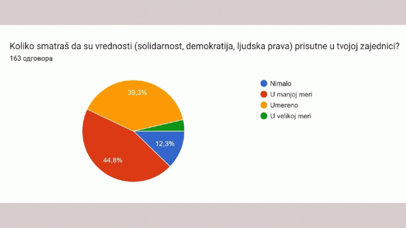 Ovo su rezultati našeg upitnika o stavovima mladih u kojem je učetvovalo više od 160 mladih iz više od 30 gradova i opština širom Srbije – od manjih sredina poput Ćićevca, Ražnja, Svrljiga i Žitorađe, do većih gradova kao što su Beograd, Niš, Kruševac, Novi Pazar, Zrenjanin i Pančevo.