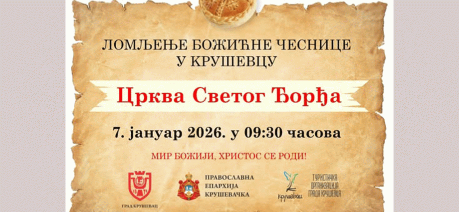 Lomljenje božićne česnice, blagoslovom arhiepiskopa i mitropolita kruševačkog Davida, biće upriličeno 7. januara, sa početkom u 9 i 30 časova.