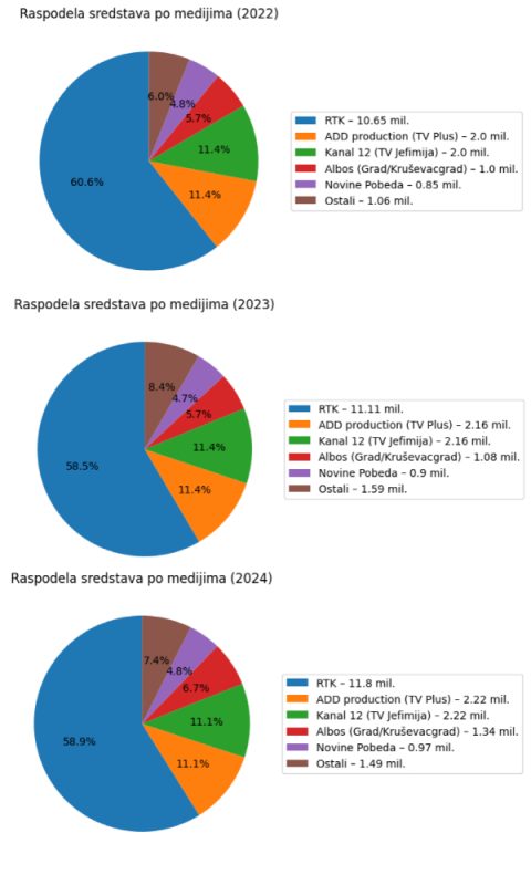 Prema analizi CINK-a Grad Kruševac je od 2015. godine do 2025. godine, odnosno tokom prethodnih 11 godina, na konkursima za medije raspodelio ukupno nešto više od 181 milion dinara. Ubedljivo najviše novca u navedenom periodu dobila je medijska kuća Radio televizija Kruševac, 105,613 milina dinara, što je 61 odsto ukupnog iznosa. Sledi, ADD Production, koja je dobila 20,753 miliona dinara.