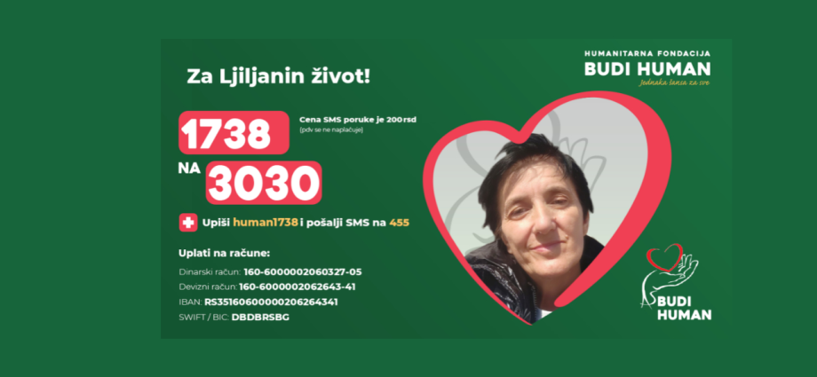 U toku je akcija prikupljanja pomoći za Ljiljanu Petrić koja boluje od karcinoma grlića materice u 4. fazi. Lečenje se, kako podseća njena porodica, od oktobra 2024. godine obavlja se u Turskoj, u Istanbulu, na klinici Medical Park.