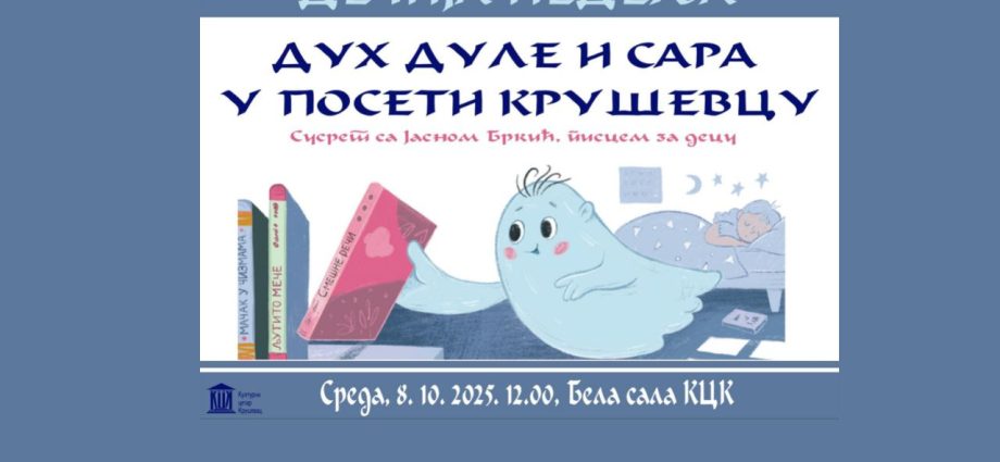 U sredu, od 12 sati u Beloj sali KCK, je promocija popularnog serijala knjiga „Duh Dule”, zamišljenog kao podrška razvoju čitalačkih veština kod dece, autorke Jasne Brkić, književnice koja često organizuje kreativne i edukativne radionice, nastojeći da deci usadi ljubav prema knjizi i čitanju.