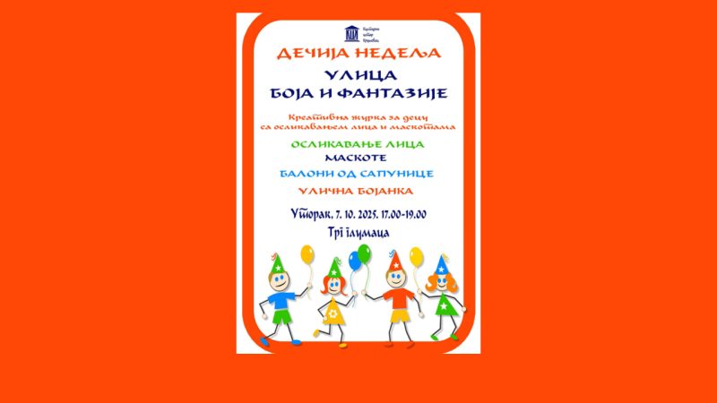 U okviru Dečje nedelje Kulturni centar Kruševac danas i sutra ( 7. i 8. oktobra) organizuje programe za najmlađe, sa ciljem da se mališani druže i kreativno izraze kroz igru, pesmu, crtanje i pisanje.