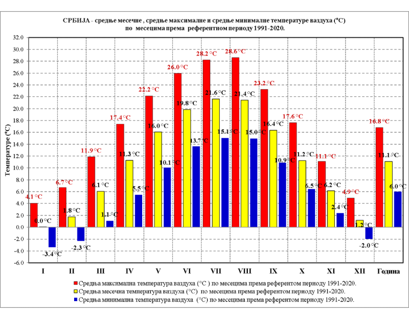 Prosečno, najkišniji meseci su maj i jun, dok je najsušniji februar.