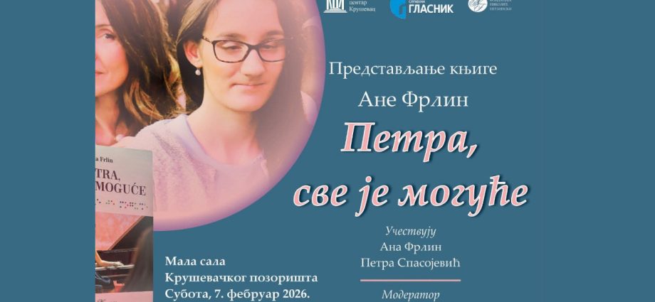 ,,Petra, sve je moguće” naziv je knjige autorke Ane Frlin, čija će se promocija održati sutra, 7. februara, u Maloj sali Kruševačkog pozorišta, sa početkom u 18 časova. Za realizaciju ovog programa zaslužni su Kulturni centar Kruševac, izdavač ,,Službeni glasnik”, kao i saizdavač ,,Fondacija Nikolić Neuzinski”.